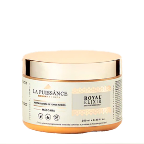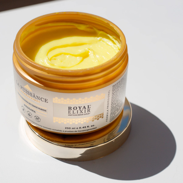 La máscara Royal Elixir ayuda a fortalecer y proteger las fibras capilares desde el primer uso. Perfecto para cabellos rubios teñidos y naturales, la fórmula profesional, enriquecida con Jalea Real y Phytoscreen™, contiene una poderosa mezcla de vitaminas, proteínas y minerales que balancean las cargas electrostáticas impidiendo la adherencia de partículas sobre su superficie, evitando el daño de agentes externos. Ilumina y acentúa los reflejos dorados.