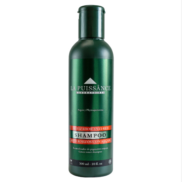 El Shampoo Matizador Anti-Rojos de La Puissânce está diseñado para cabellos teñidos en tonos de castaño profundo y chocolate que desean neutralizar los indeseados reflejos rojizos, al tiempo que mantienen su cabello saludable y radiante. Formulado cuidadosamente con Aceite de Argán y Phytoqueratina, este shampoo proporciona una hidratación profunda a las hebras teñidas, protegiéndolas de la oxidación causada por los radicales libres, y fortalece la fibra capilar, mejorando su elasticidad y resistencia.
