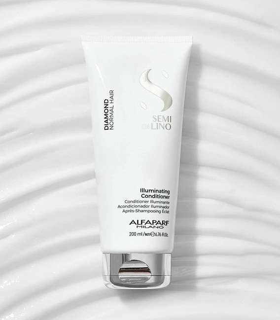 Alfaparf Semi Di Lino Diamond Normal Hair Iluminating Leave-In iluminador sin enjuague, desenreda y aporta brillo extremo dejando el cabello suave y ligero.